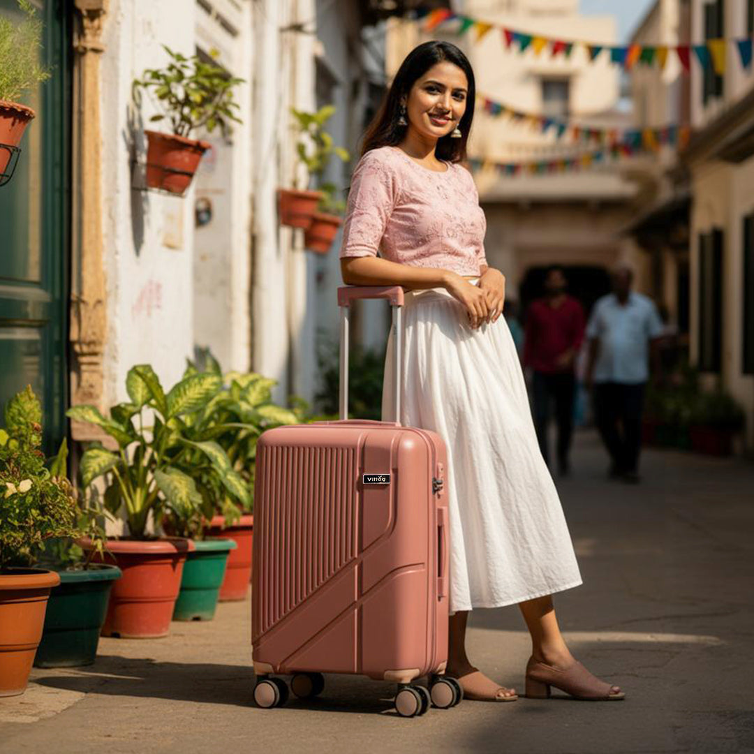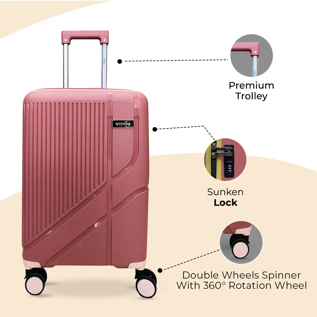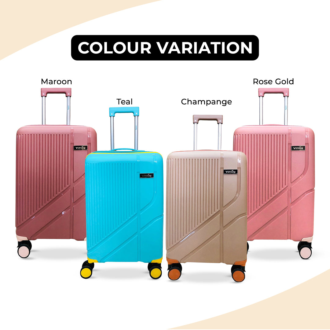 Camilla by Vittag Luggage is made from premium scratch-resistant polypropylene material, offering lightweight durability in a hard-sided design. Available in Rose Gold, Teal, Champagne and Maroon, this suitcase ensures you travel in style while maintaining functionality.