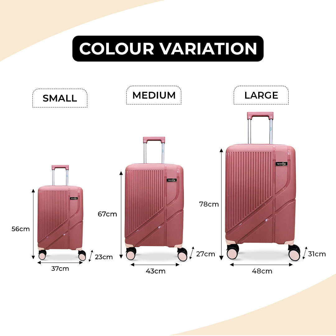 With an anti-theft zipper and a premium aluminium trolley system, this luggage is designed for easy handling and convenience. Available in three sizes, Small, Medium, and Large, the Camilla luggage caters to all your travel needs, making it the perfect companion for any adventure.