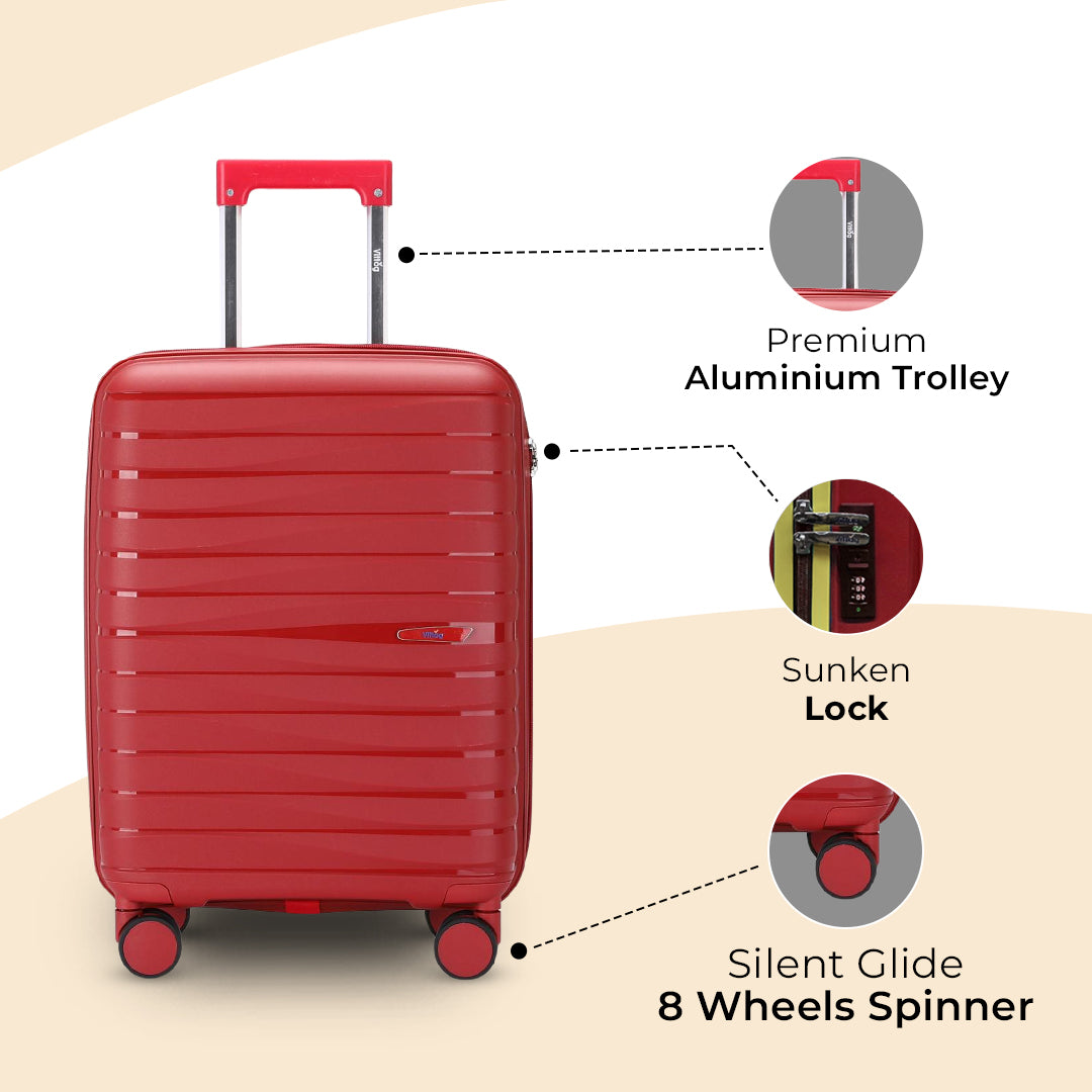 Carina by Vittag Luggage is made from premium scratch-resistant polypropylene material, offering lightweight durability in a hard-sided design. Available in Dark Grey, Black, Blue, and Maroon, this suitcase ensures you travel in style while prioritizing functionality.