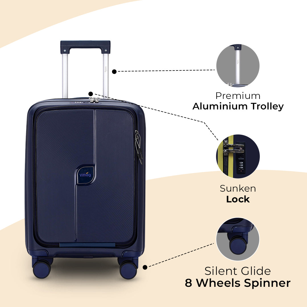 Cats Eye by Vittag Luggage is made from premium scratch-resistant polypropylene material, offering lightweight durability in a hard-sided design. Available in Dark Grey, Black, Blue and Maroon, this suitcase ensures you travel in style while prioritizing functionality.