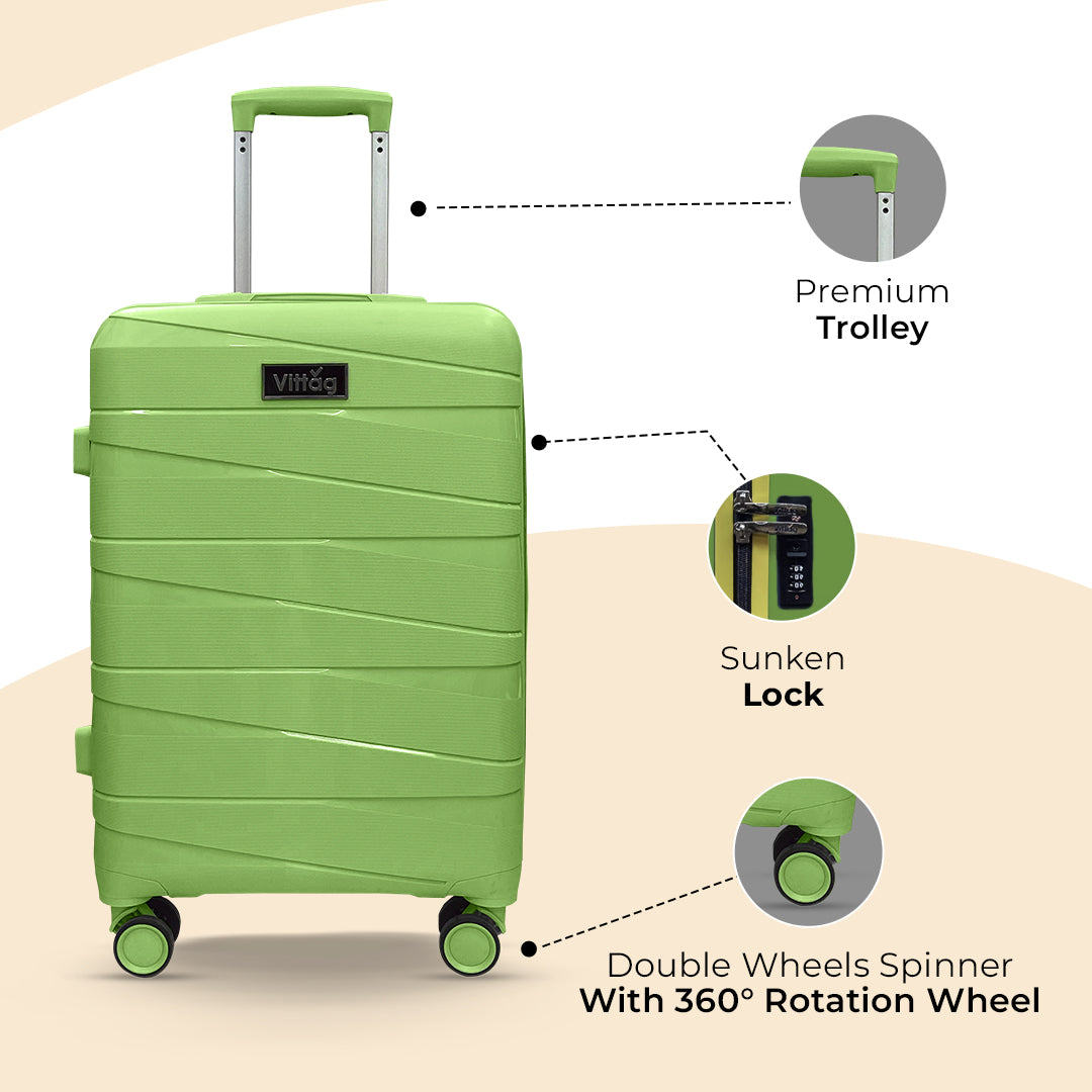 Iris by Vittag Luggage is designed with premium polypropylene material, providing a durable and lightweight hard-sided option for modern travellers. Available in Rose Gold, Yellow, Sea Green, and Purple, this suitcase offers both style and practicality.
