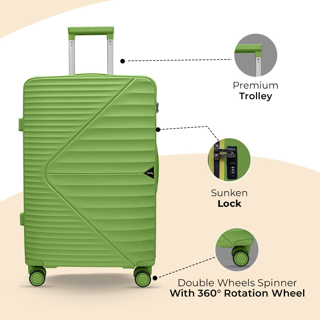 Orchid by Vittag Luggage is crafted from premium polypropylene material, offering lightweight durability in a hard-sided design. Available in Rose Gold, Yellow, Sea Green, and Purple, this suitcase combines style with functionality.