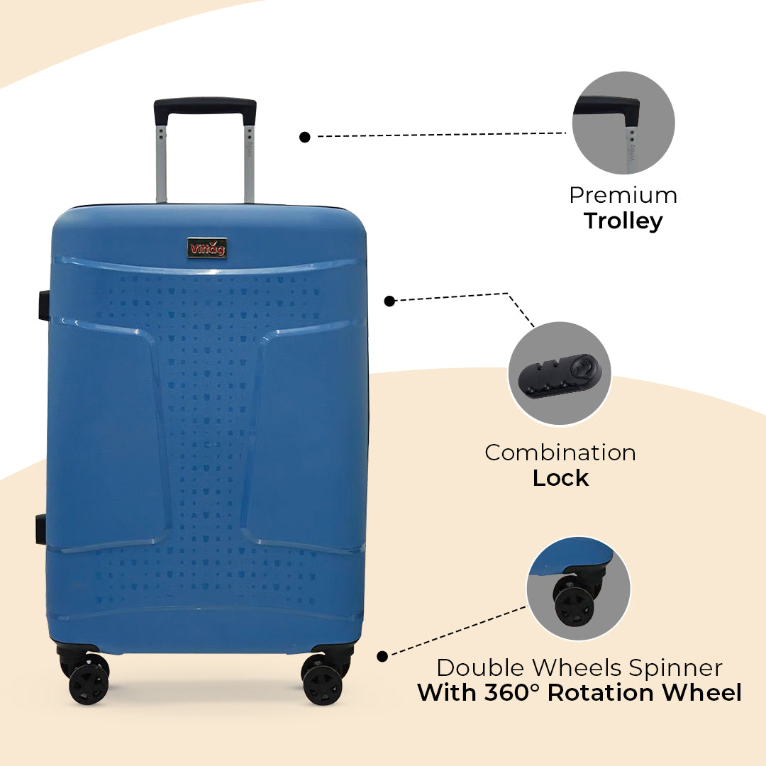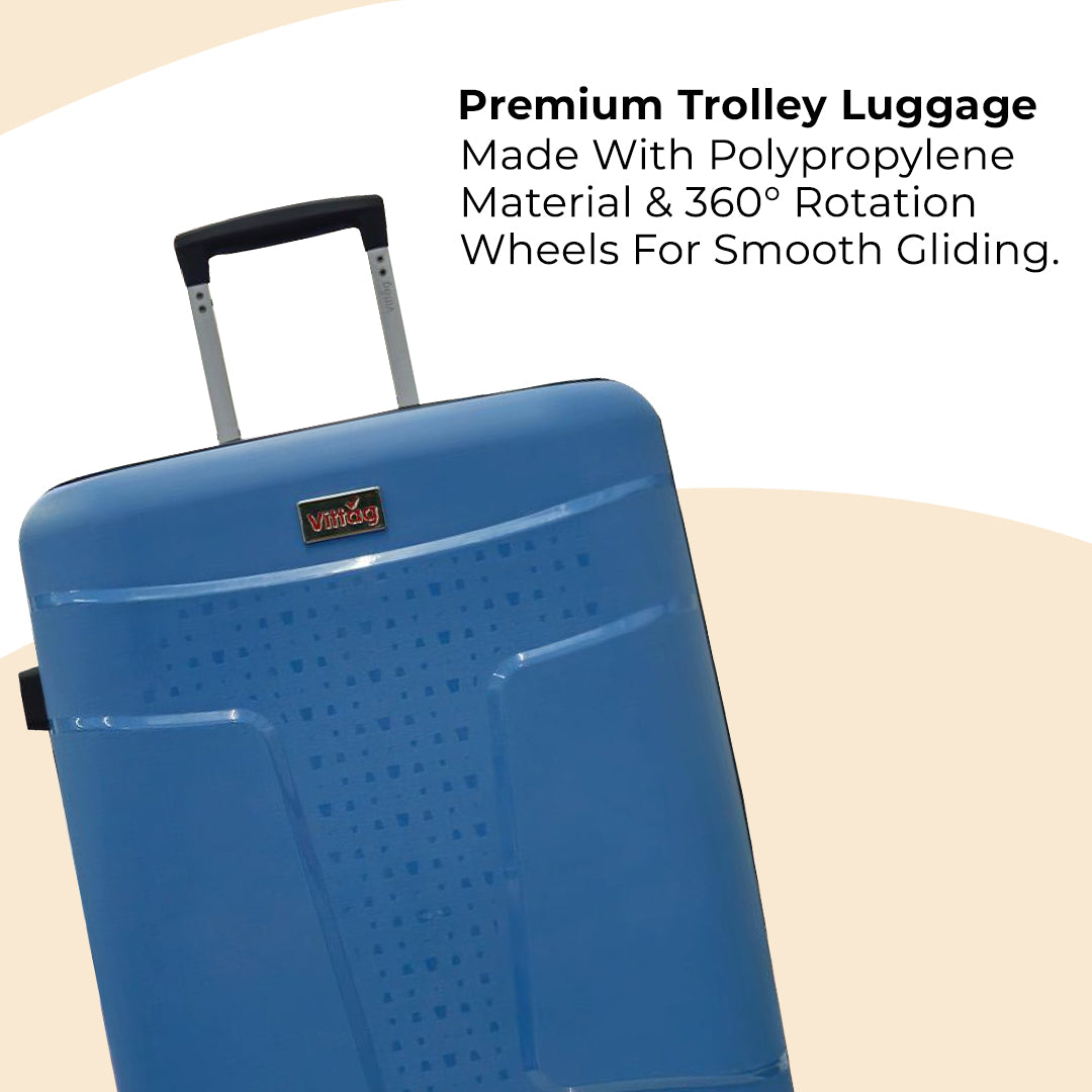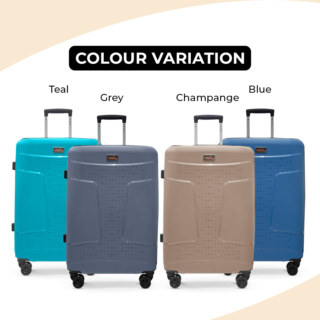 Rush In by Vittag Luggage is made from premium scratch-resistant polypropylene material, offering lightweight durability in a hard-sided design. Available in Blue, Grey, Champagne and Teal, this suitcase ensures you travel in style while maintaining functionality.