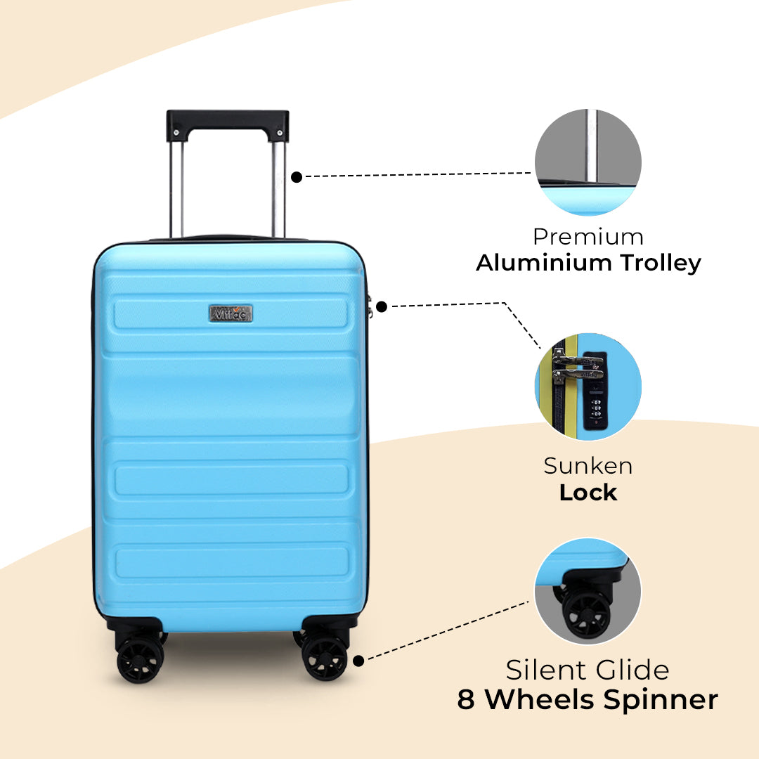 Vega by Vittag Luggage is built with premium scratch-resistant ABS (Acrylonitrile Butadiene Styrene) material, offering a perfect blend of durability and lightweight construction for a sturdy exterior. Available in Navy, Light Blue, Silver, Black, Gold, and Rose Gold, this suitcase combines style with functionality.