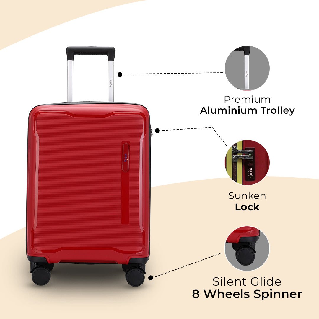 Equipped with a Sunken Type lock, this luggage provides added security for your belongings. The Silent Glide 8 Wheels Spinner With 360° Rotation Wheel makes handling effortless, ensuring a comfortable travel experience. Available in three sizes, Small, Medium, and Large, the Zeta luggage meets all your travel needs, making it the ideal choice for every trip.